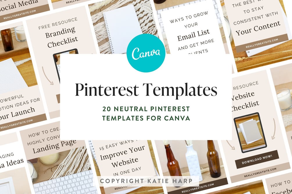 Neutral Pinterest Canva Templates - 20 Beige Pinterest Templates